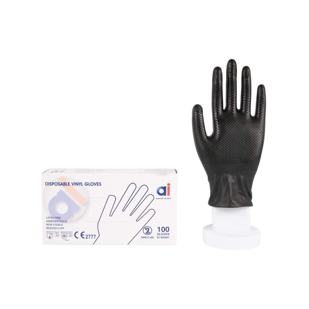 Thickened material, strong chemical resistance, puncture resistance, and textured surface for enhanced grip and slip resistance.