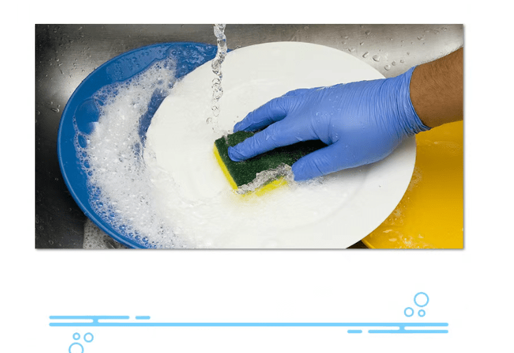 A: Although dishwashing liquid quickly removes grease, prolonged contact can easily strip moisture and natural oils from the skin of the hands, leaving them dry, rough, or even chapped. Ordinary gloves often lack a snug fit or are too loose, frequently allowing water to seep in, significantly reducing their protective effect. Disposable nitrile gloves have good elasticity, fitting closely to the hand’s contours while maintaining flexibility without hindering movement. They are less prone to letting water in during use, effectively preventing direct contact between cleaning agents and the skin, thoroughly solving the problem of hand protection during cleaning.